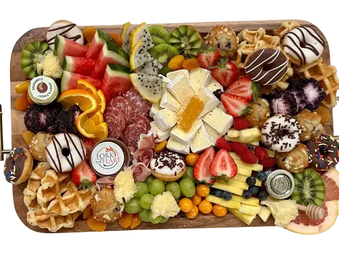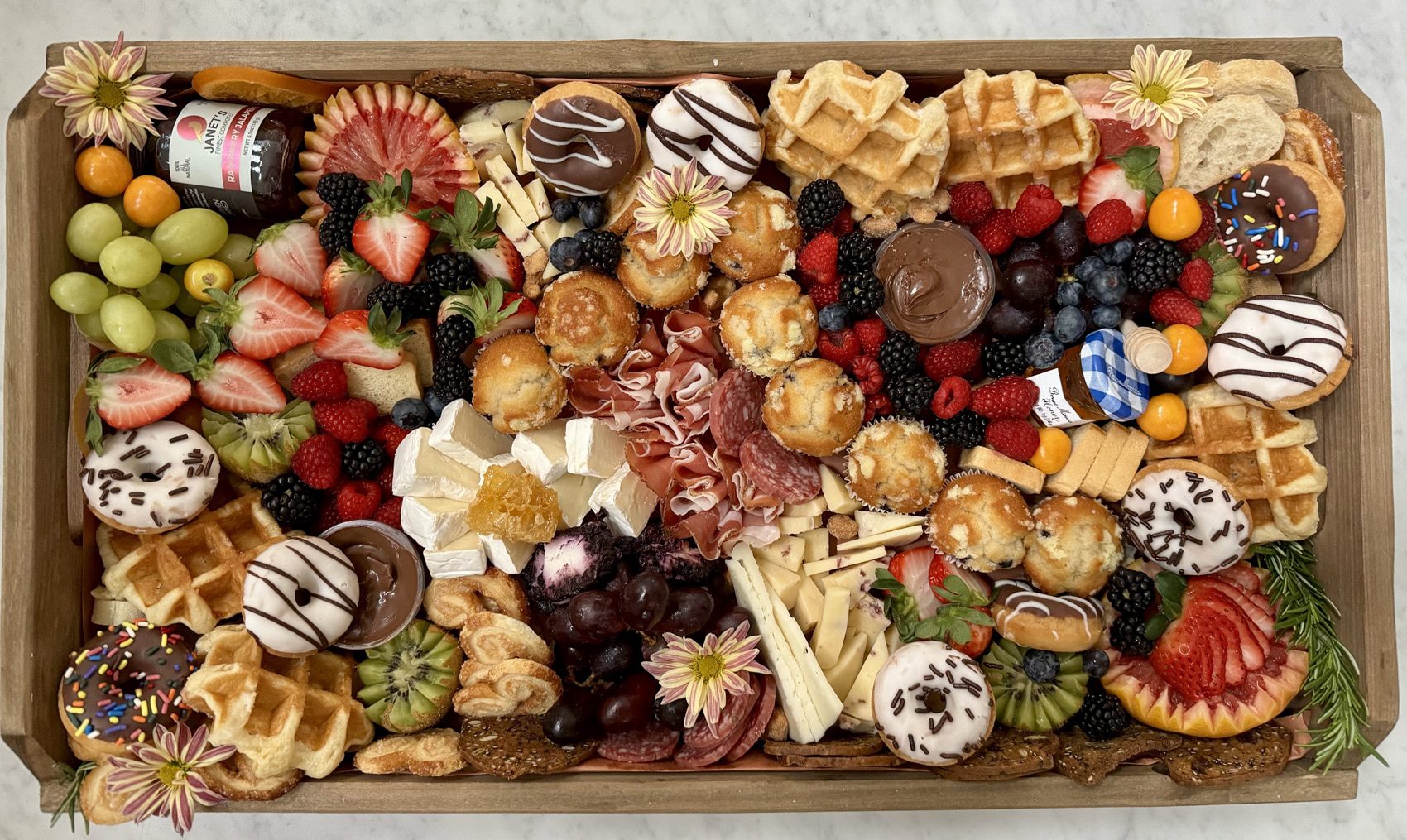Perfect for gatherings, our Medium Brunch Board is a beautifully curated spread featuring a delicious mix of sweet and savory favorites. Packed with cured meats, artisanal cheeses, mini pastries, and seasonal fruit, this board offers something for everyone. Indulge in fluffy waffles with Nutella, crunchy nuts, and crisp crackers, all elegantly arranged for a stunning and shareable brunch experience. Whether for a bridal shower, corporate brunch, or weekend gathering, this board is sure to impress!