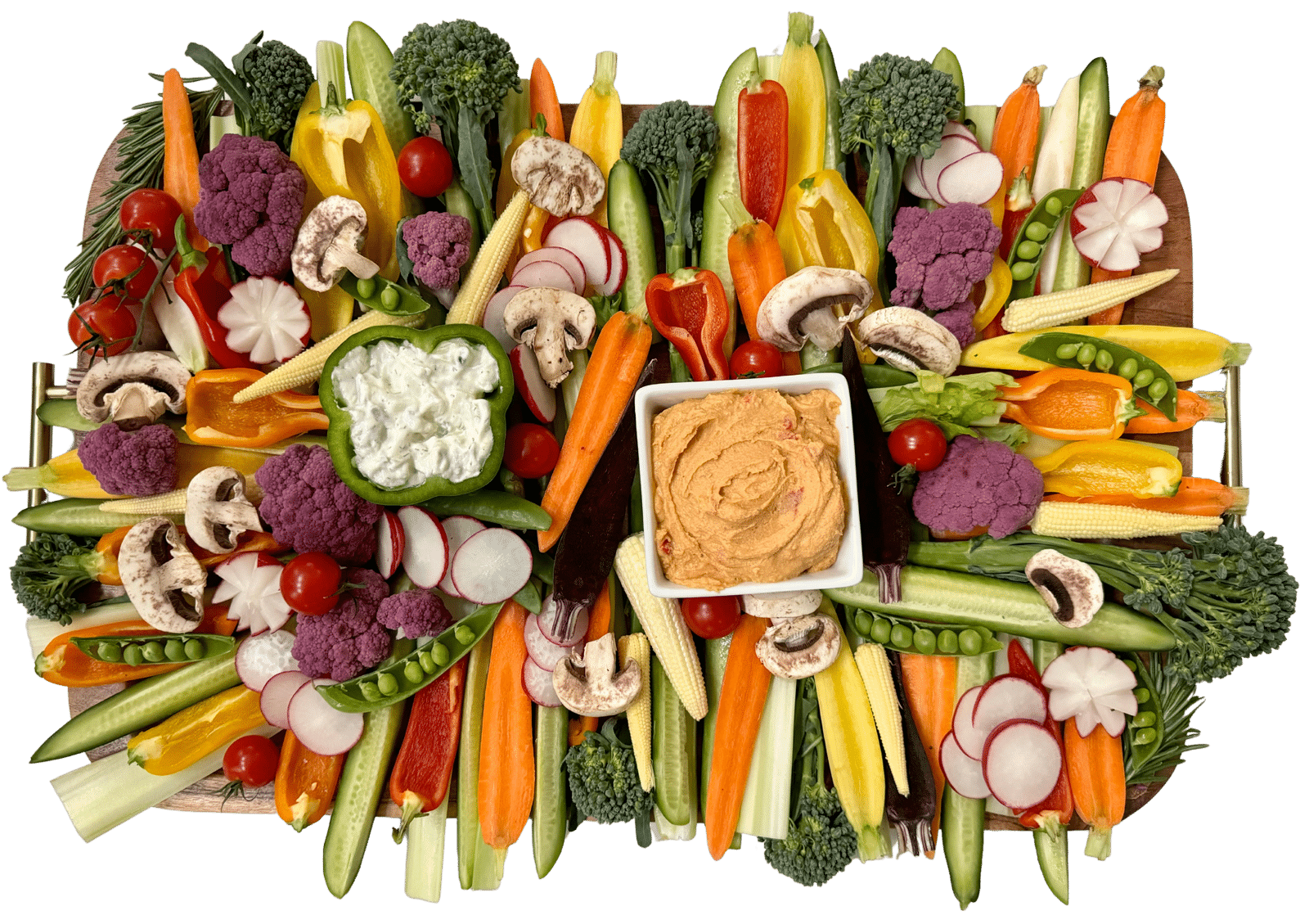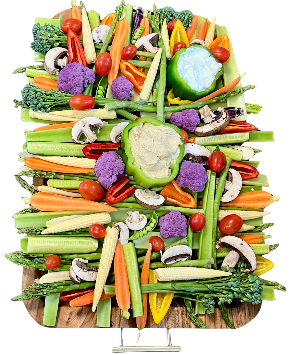 Artfully arranged on a generous 22″ x 12″ board. This spectacular crudités spread showcases nature’s finest.